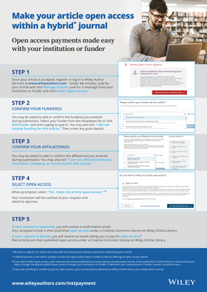 Your institution or funder may be able to help with open access Article Publication Charges (APCs) through a Wiley Open Access Account.
